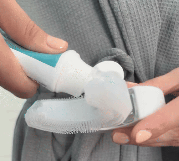 apply toothpaste evenly on the head,Place it in your mouth, gently bite down, choose the frequency mode